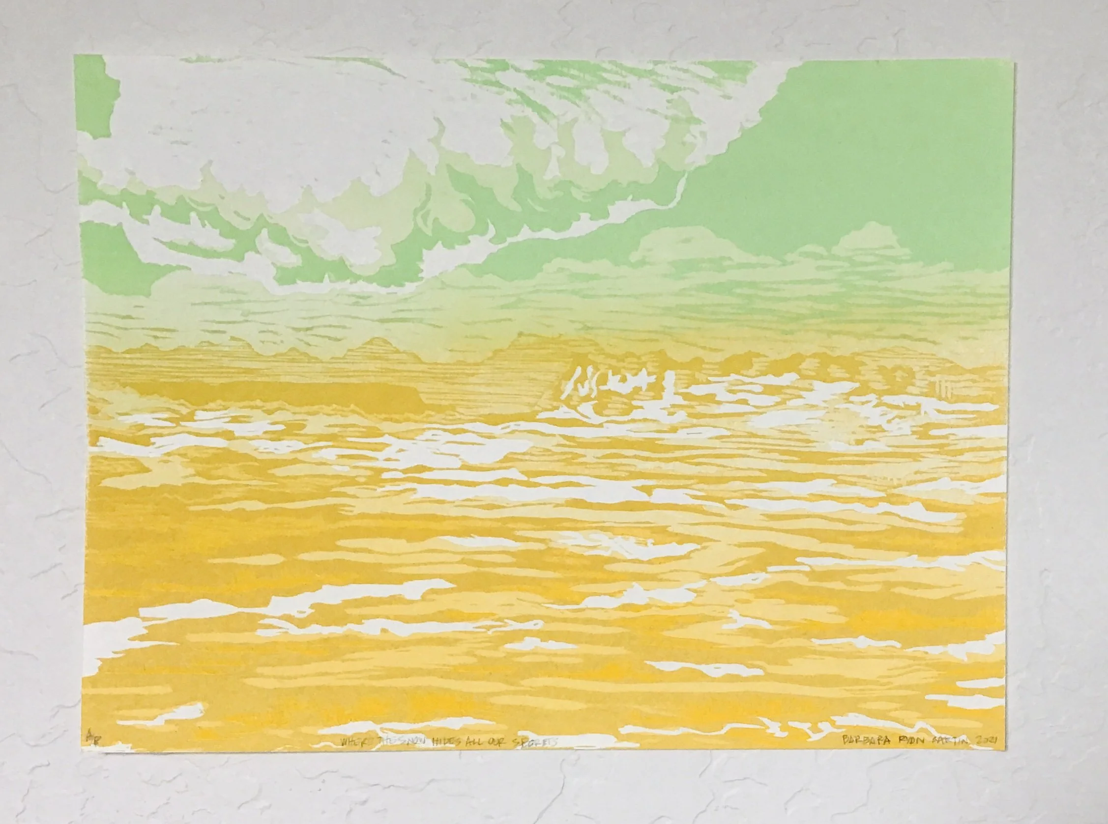 The Cut - study for The Story of Our Disappearing | 2018 | color reductive woodcut | 12" x 6" | Edition of 5 Private Collections